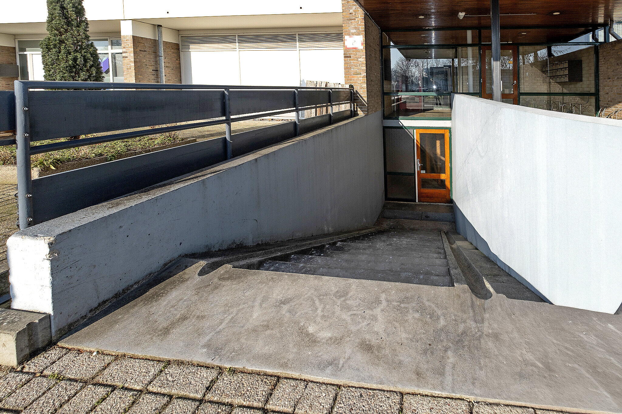 De begane grond bestaat uit een centrale hal met brievenbussen, lift en trapopgang.